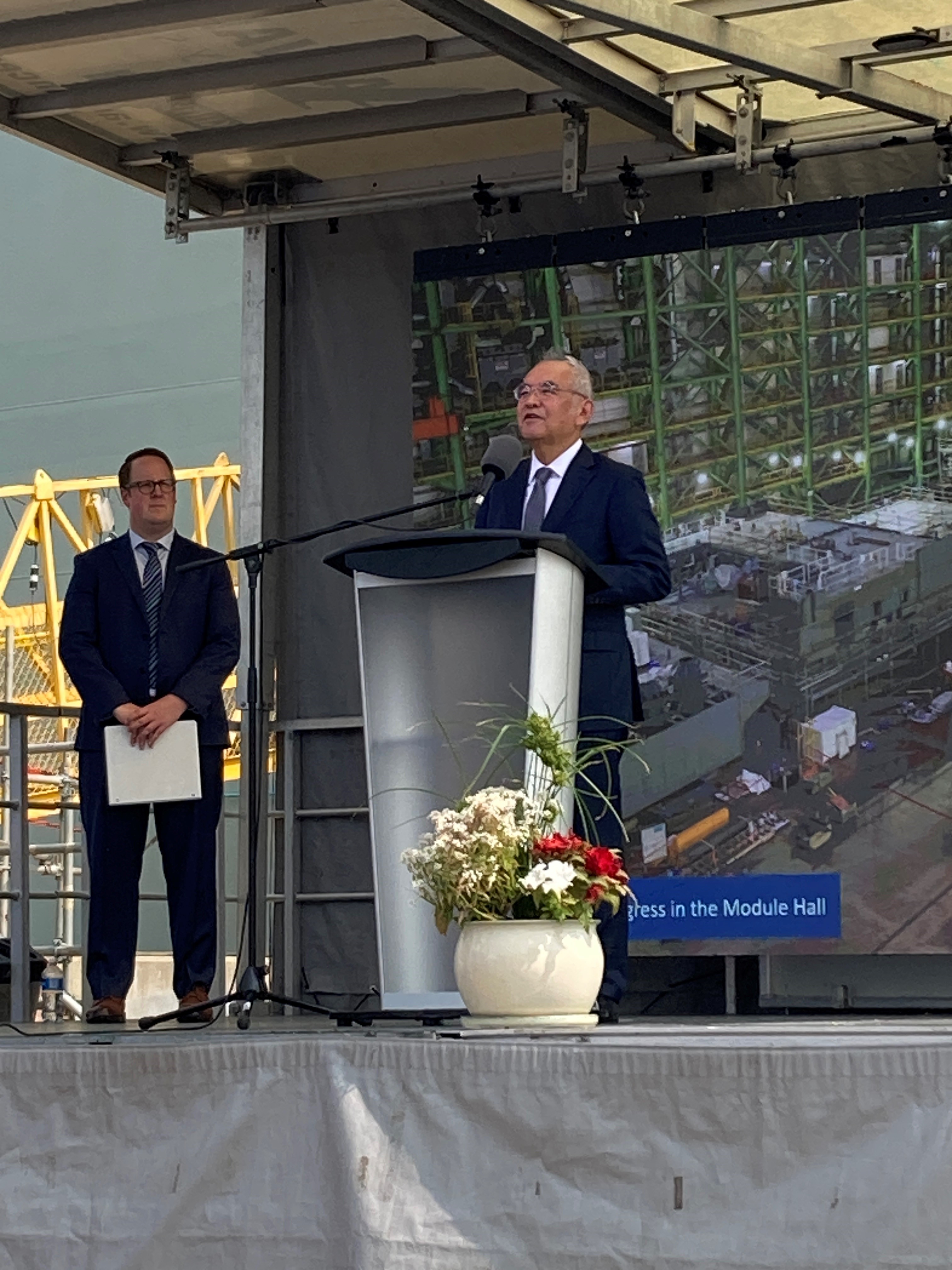 現下の国際情勢をみれば、2024年に発表された最新の国防戦略「Our North, Strong and Free」に規定されているとおり、北極圏での任務はカナダ海軍にとって最重要ミッションの一つです。その艦船にグレイ大尉の名が付されることには、3つの文脈で意義深いと実感しました。第一に、カナダの国防政策、就中、北極の重要性。第二に、地元経済への貢献とアーヴィン造船所の技術力。そして、第三に、日加関係の進展です。