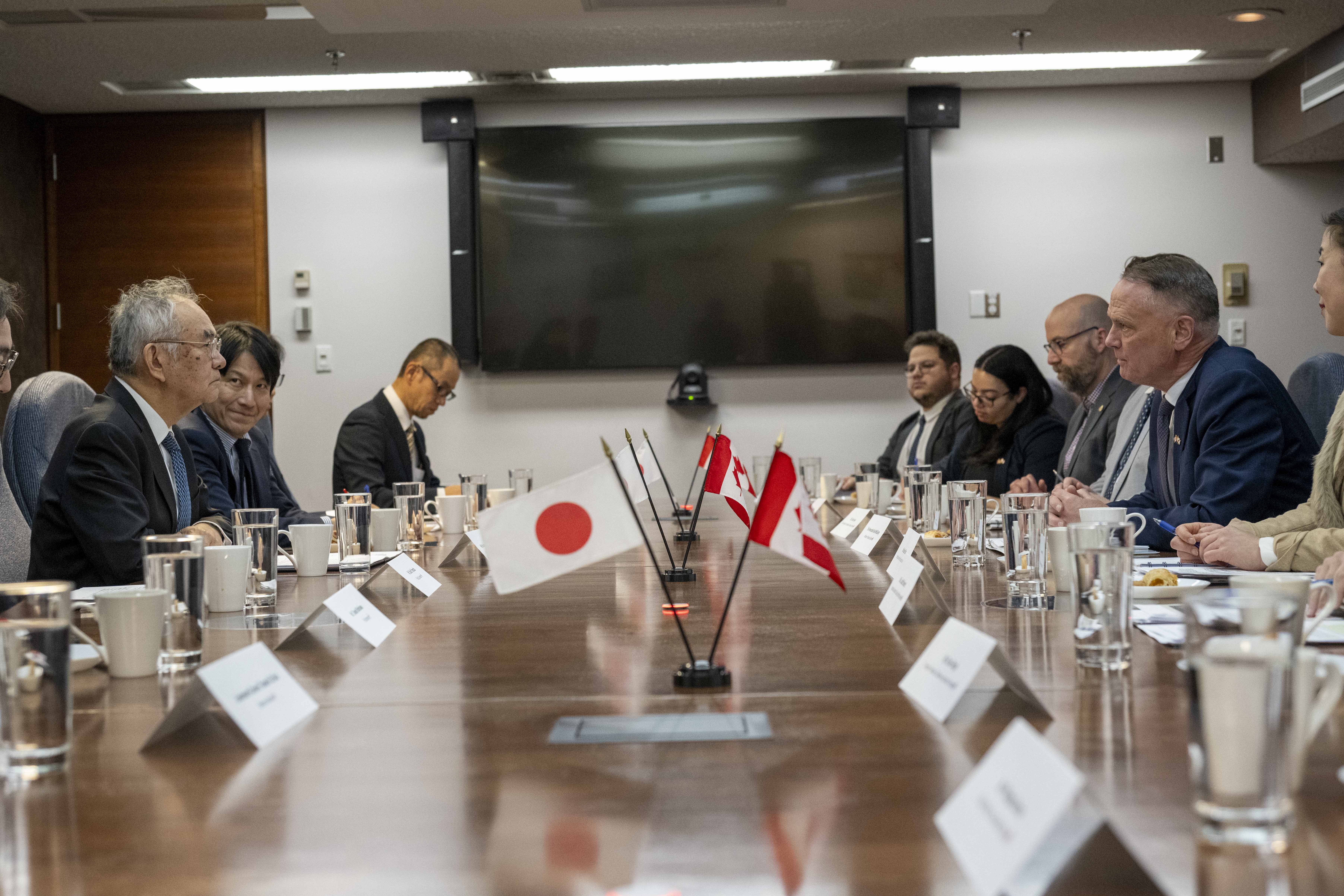 冒頭に述べた日加ETTAの署名の後で、私はマクギンティ国防大臣と約1時間にわたって会談しました。国防大臣からは、厳しい国際情勢の下、国防費・人員・装備等の国防体制の改革を断行している点について詳しい説明を頂戴しました。北極圏を含め北米大陸を最先端技術をもって防衛する「ゴールデンドーム」にも言及しつつ、米国との揺るぎない相互信頼関係を強調されました。経済面では対米関係は緊張しているものの、安全保障ではNORADと NATO両面でカナダは米国との協力関係強化にコミットメントしている姿勢が極めて印象的でした