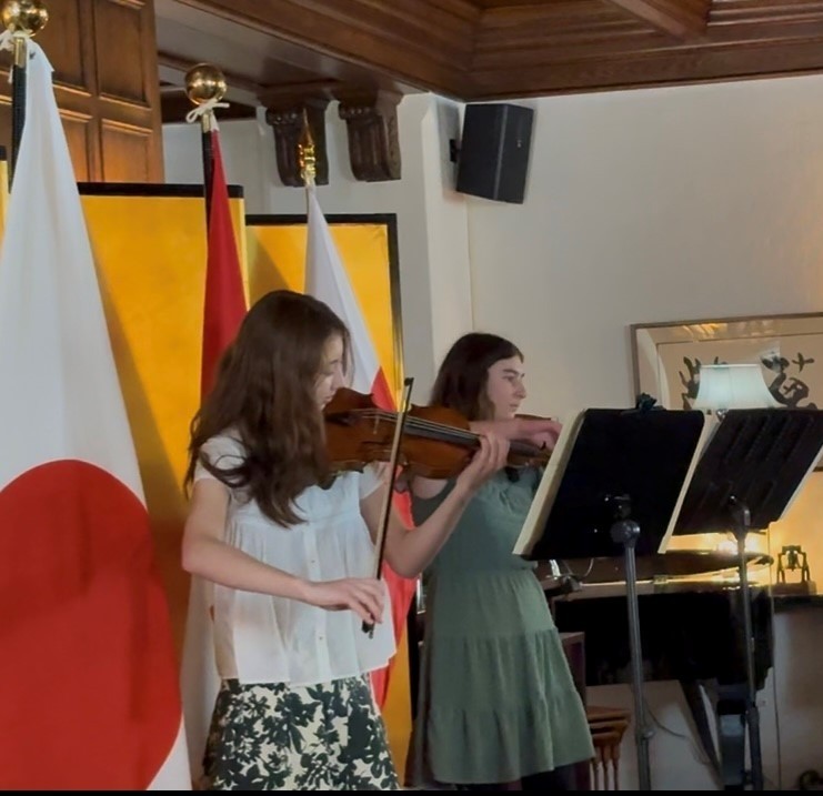 イベントの締め括りは、オタワ有数の芸術高校ドゥ・ラ・サルの音楽科生徒による2梃のヴィオリンによるショパン「別れの曲」の素晴らしい演奏でした。ポーランドと言えばショパンです。高校にお願いしましたら、是非にと快諾頂きましたが、それ以上に生徒さんが演奏だけでなく、講演に真剣に向き合ってくれました。このような人権問題を次の世代に伝える観点からも極めて意義深いと思います。